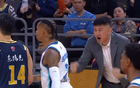 关键时刻米奇、王奕博站出来连下7分帮助青岛稳定局势,接下来青岛继续包夹徐杰,次节中段,由于徐杰连续出战13分钟不得不下去休息,青岛抓住了徐杰下场休息进攻混乱的机会连追5分将分差缩小来到4分,杜锋喊出暂停,不得已再上徐杰。